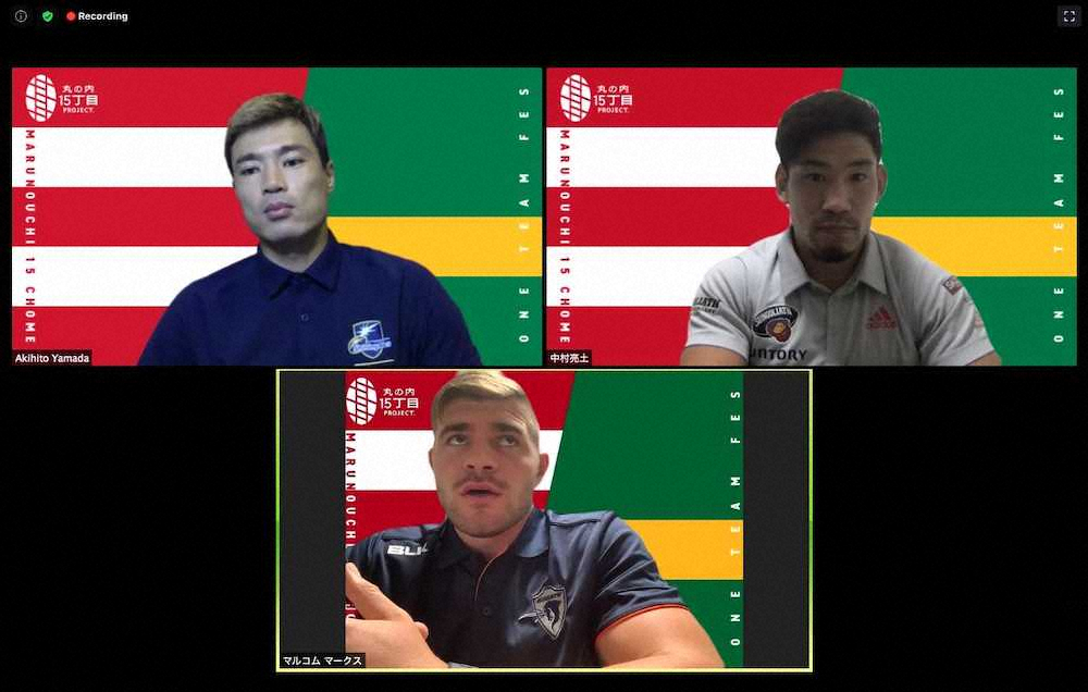 昨年のラグビーW杯日本大会準々決勝で日本代表が南アフリカ代表に敗れてちょうど1年となった20日、三菱地所株式会社主催の「オンライントークラグビー世界大会2020」が開かれ、日本代表からはCTB中村亮土(29=サントリー)、南アフリカ代表からはフッカーのマルコム・マークス(26=クボタ)が出席し、約1時間のトークショーを盛り上げた。司会は元日本代表のWTB山田章仁(35=NTTコム)が務めた。