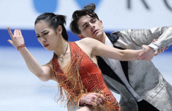 笑顔を見せる小松原美里とティム・コレト(撮影・小海途 良幹)
