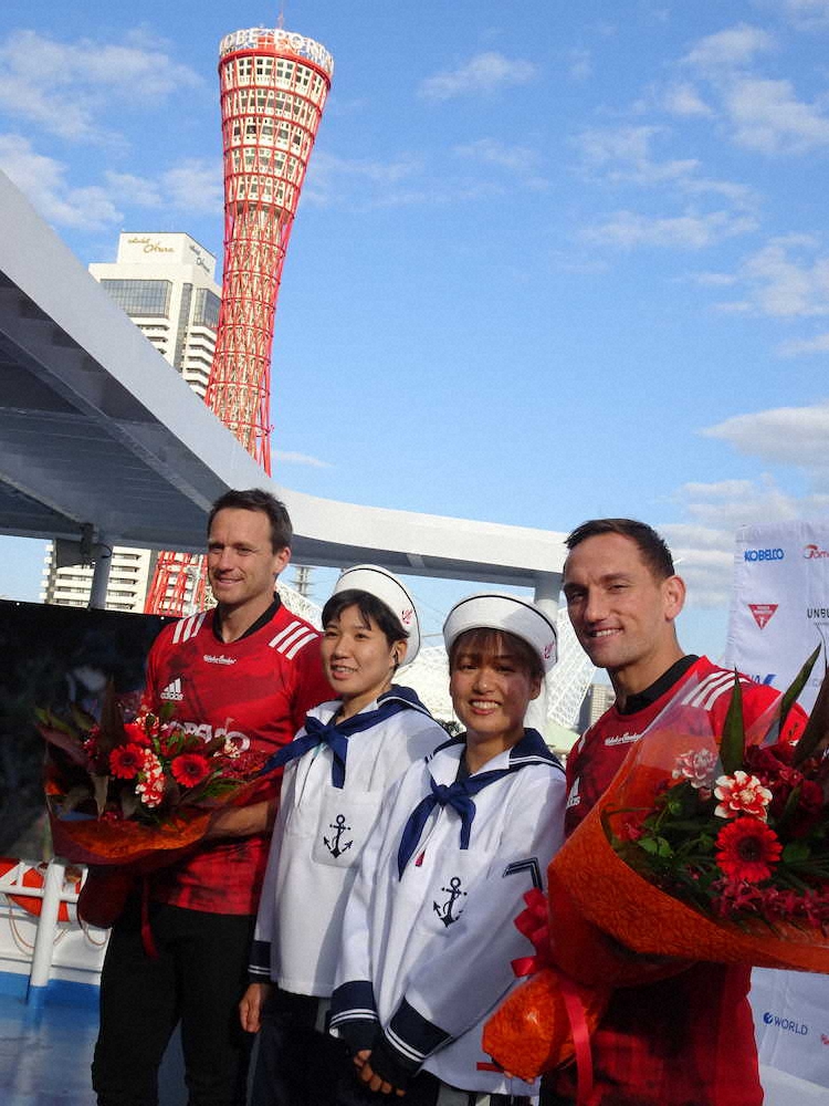 ラグビー・トップリーグの神戸製鋼が4日、新加入の元ニュージーランド代表でともにW杯優勝経験がある、万能バックスのベン・スミス(34)、SOアーロン・クルーデン(31=ともにニュージーランド)の会見を、神戸市の観光船上で行った。