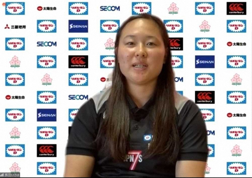 合宿中の熊谷からオンライン取材に応じる7人制女子日本代表の長田いろは