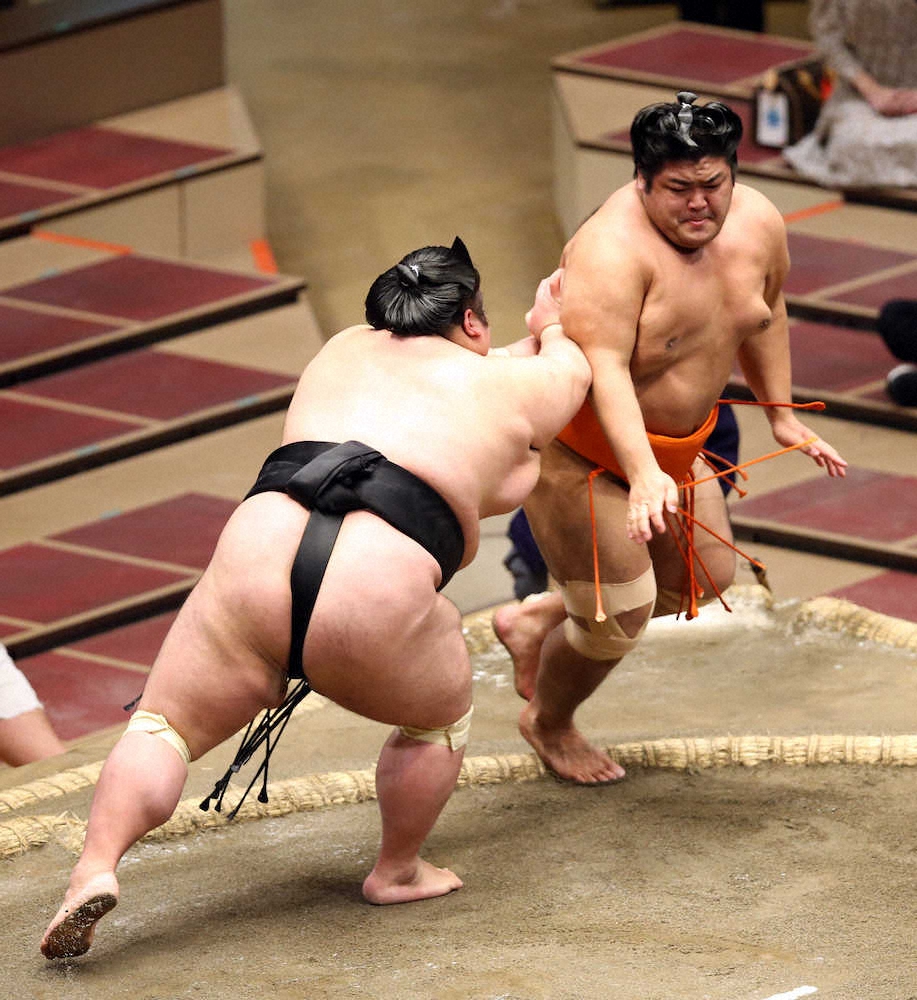 <11月場所・13日目>竜電(右)を押し出しで下す照ノ富士(撮影・村上 大輔) Photo by スポニチ 貴景勝、志摩ノ海との1敗対決を制し単独トップに 照ノ富士は2敗キープ ギャラリーで見る この記事のフォト 2020年11月20日の画像一覧 もっと見る 2020年11月20日の画像をもっと見る