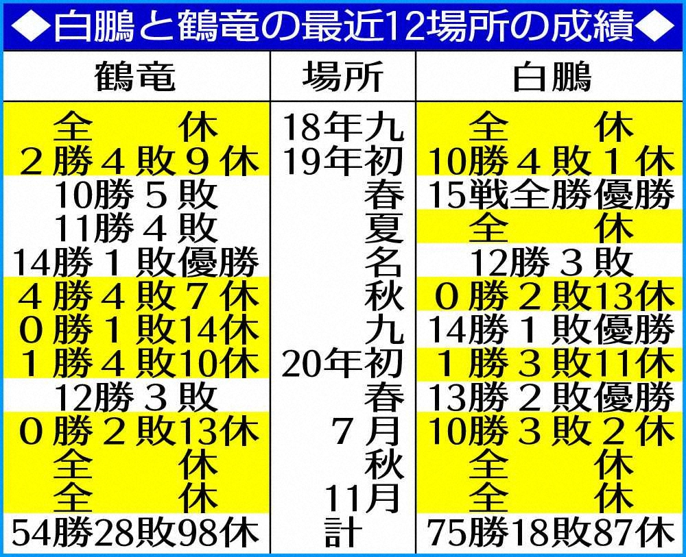 ともに3場所連続休場中だが、横審は一昨年九州場所からの12場所を判断材料にした。両横綱とも3分の2の8度の休場で、全休はともに3分の1の4場所(鶴竜が初日不戦勝の昨年九州場所を含む)。その間に白鵬が3回、鶴竜は1回優勝したが「そういう結果は別として、休みがあまりにも多い。それなりの深い、強い責任を持って今後に対処してほしい」と説明した。