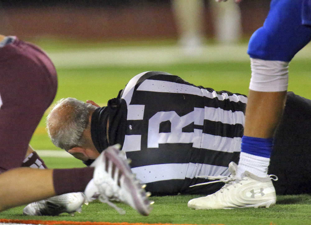 審判を突き倒したエディンバーグ高のDLエマニュエル・デュロン(AP) Photo by AP 高校のアメフト選手が審判に暴行 テキサス州で試合中に大ハプニング! ギャラリーで見る この記事のフォト 2020年12月04日の画像一覧 もっと見る 2020年12月04日の画像をもっと見る