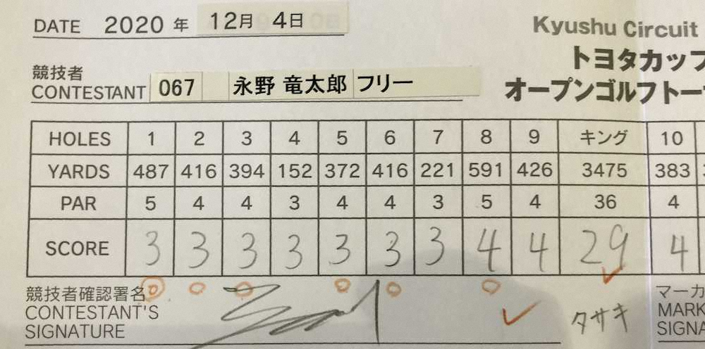 アウトを29で回り、逆転優勝した永野 Photo by スポニチ プロ12年目の永野が逆転で初優勝 ゴルフトヨタカップ ギャラリーで見る この記事のフォト 2020年12月04日の画像一覧 もっと見る 2020年12月04日の画像をもっと見る