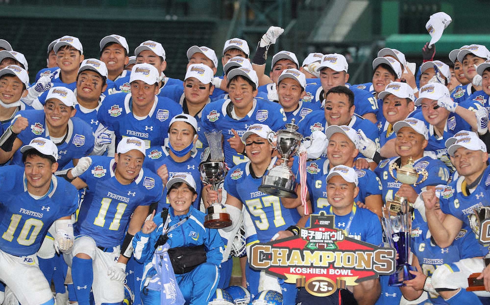 関学大(関西代表)が日大(関東代表)を42―24で下して3連覇を果たし、史上最多を更新する31度目の学生日本一に輝いた。QB奥野耕世(4年)がパスで2TD、320ヤードを稼ぎ、史上5人目となる2度目のミルズ杯(年間最優秀選手)を獲得。甲子園ボウルMVPには、3TDを決めたRB三宅昂輝(4年)が輝いた。関学大は学生代表として、来年1月3日のライスボウルで社会人代表(富士通VSオービックの勝者)と激突する。
