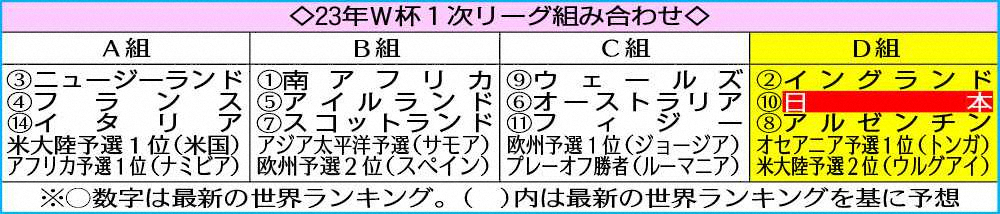 一方、英紙デーリー・メールは14日、「好都合な組み合わせ。エディーとイングランドは早くも準決勝を見据える」とW杯の組み合わせを表現。日本については「毎年開催されている国際大会で部外者となっている」と強化体制の不備を指摘した。