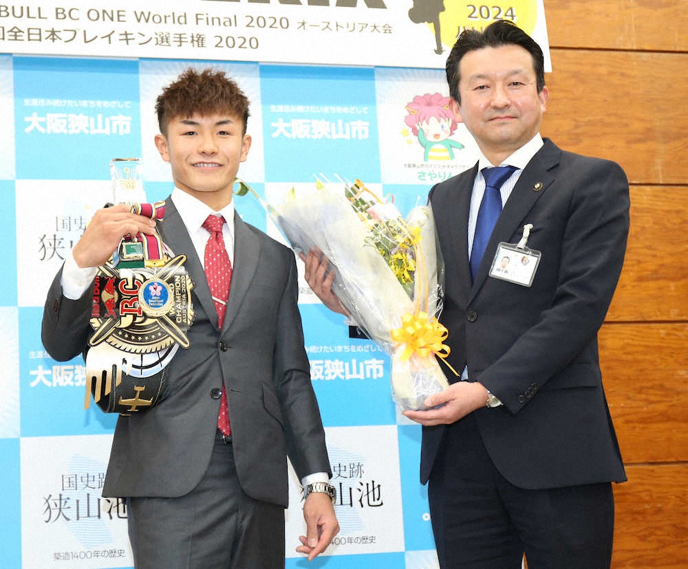 2024年パリ五輪の追加競技で初採用されたブレイクダンスの半井重幸(18)が21日、観光大使を務める出身地の大阪府狭山市を表敬訪問、地元愛を語り尽くした。11月に世界最高峰と称される国際大会「Red Bull BC One World Final」と、全日本選手権で優勝。世界一と日本一の称号を手に凱旋(がいせん)したダンサーネーム“Shigekix”は「何回か表敬訪問をさせてもらい、レッドブルの大会で勝ちたいと言っていて、優勝を報告できて凄くうれしい」と喜びを語った。