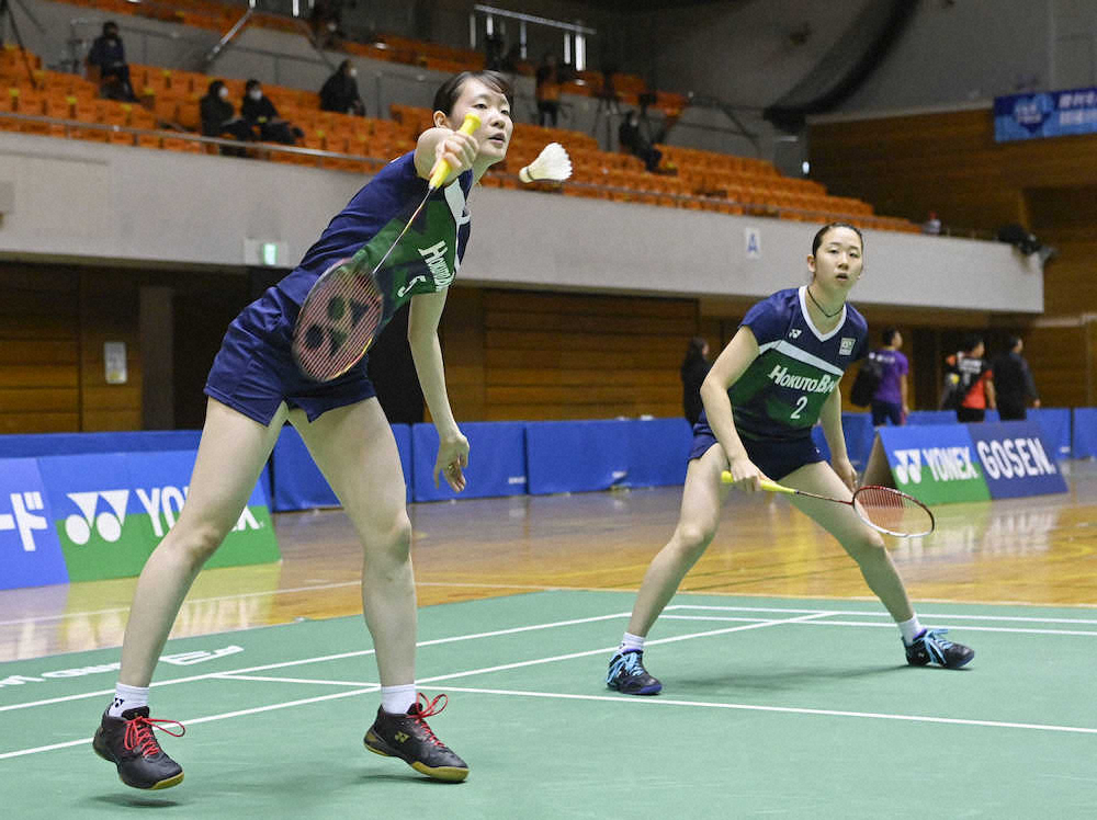 永原和可那(奥右)、松本麻佑のナガマツペア Photo by スポニチ 前回女王ナガマツが好発進「この大会を大事にしたい」バド全日本総合 ギャラリーで見る この記事のフォト 2020年12月22日の画像一覧 もっと見る 2020年12月22日の画像をもっと見る