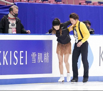 2人ともリンクを降りて状態を確認し、一度は練習を再開。ジャージーを羽織って滑ったが、再びリンクから離れた。その後、高橋だけがリンクに上がり、映画「マスク」の曲かけに合わせて1人でツイズルなどを確認。その後はコーチ含め3人で話し合い、練習を切り上げた。