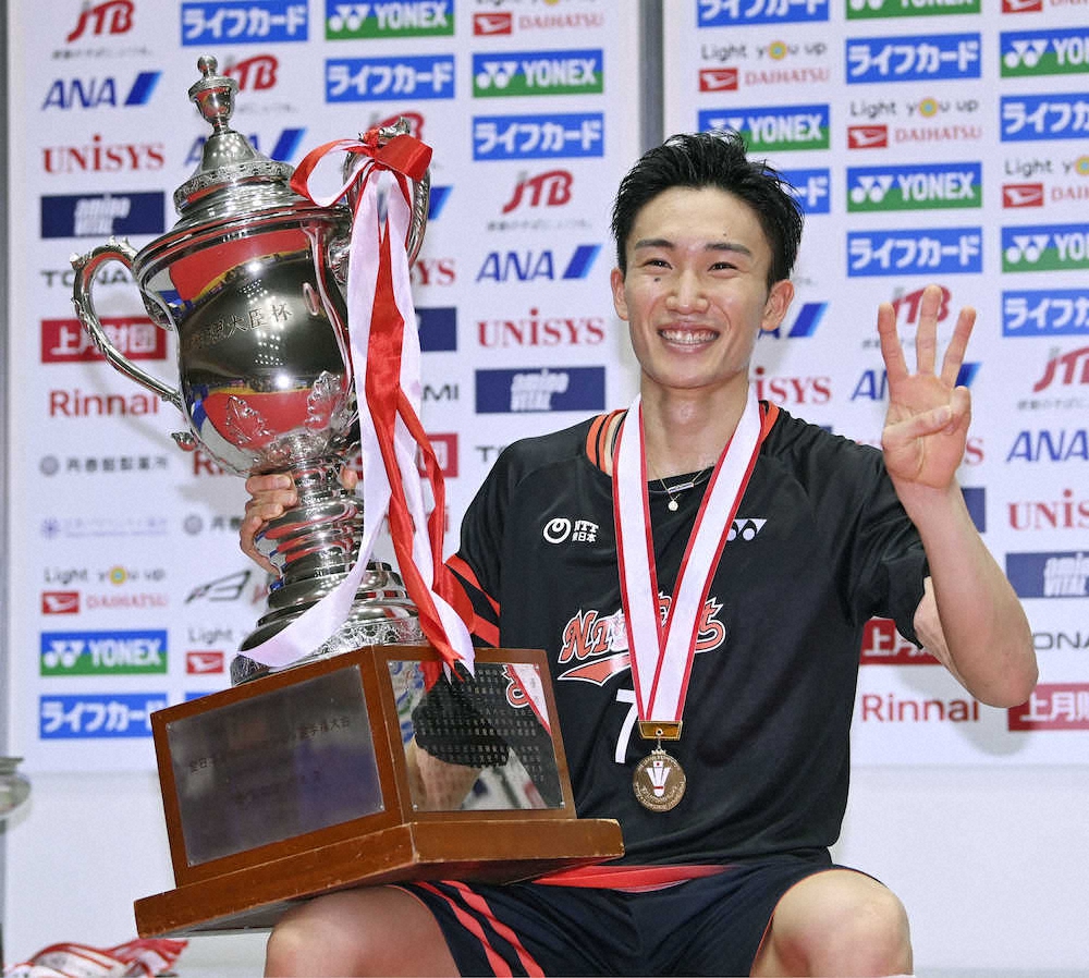 男子シングルスで優勝を決めてガッツポーズする桃田賢斗 Photo by 代表撮影 桃田 男子単、復活V3 死闘80分逆転勝ち「最後にひと踏ん張りできた」 ギャラリーで見る この記事のフォト 2020年12月28日の画像一覧 もっと見る 2020年12月28日の画像をもっと見る