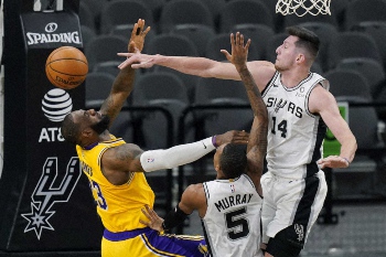 試合は121―107(前半63―53)でレイカーズが勝って2勝2敗。デニス・シュルーダー(27)が21得点、アンソニー・デービス(27)が20得点を稼ぎ、ウェズリー・マシューズ(34)は放った6本の3点シュートをすべて成功させて18得点をたたき出した。