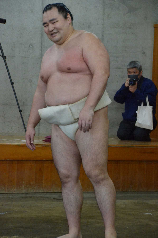 この日は東京都墨田区の陸奥部屋で幕下以下の力士に胸を出す程度。昨年末に相撲を取る稽古を再開したが、今年はまだ取っていない。状態は上向きとしつつ「良くなってきたからとはいえ無理はしたくない」と慎重な姿勢を崩さなかった。