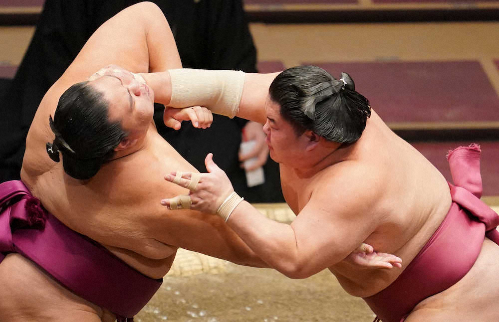 3大関を撃破した平幕の大栄翔が小結・御嶽海も料理した。得意の突き押しの展開に持ち込み、相手の密着を許さず攻め続けた。