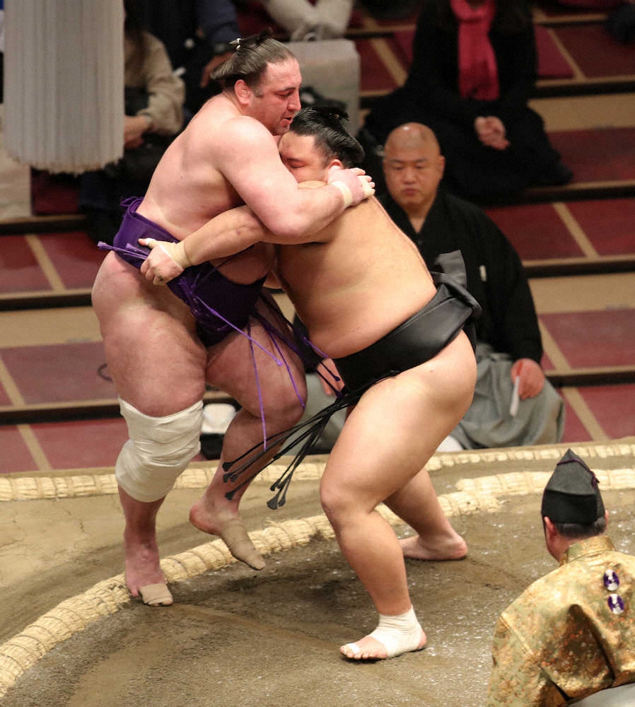 あすの6日目の相手は今場所、元気な阿武咲だ。琴勝峰戦のように立ち合いでちょっと当たって、左からいなすというのは通用しない。そこは阿武咲も当然読んでくる。当たった後に、どんどん前に出て突き放していくことが大事だ。今場所は前に出ても押されるパターンが多い。それで態勢を崩し、はたかれて負けている。とにかく前に出て攻め続けることだ。もし黒星を喫してしまうようだと、本当に厳しく、苦しくなる。(元大関・栃東)