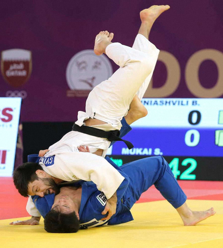 男子90キロ級の向はいいところなく、2回戦で姿を消した。屈強なグビニアシビリと十分に組み合うことができず下がる場面が目立った。