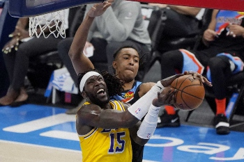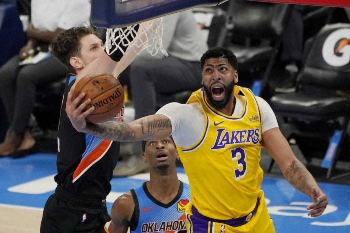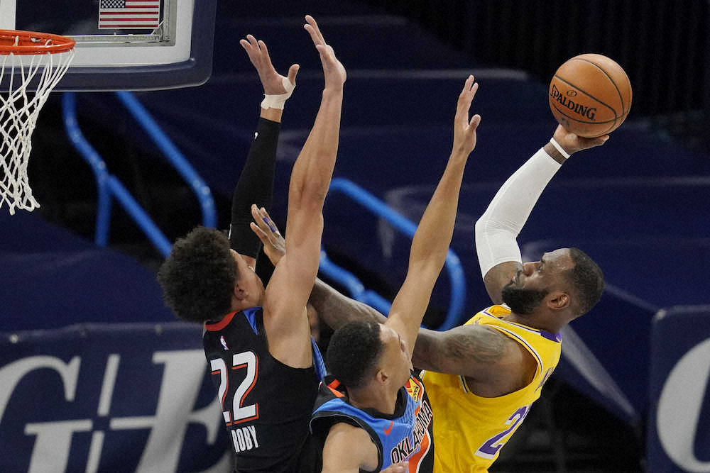 NBAは13日、各地で7試合を行い、昨季王者のレイカーズは敵地オクラホマシティー(オクラホマ州)でサンダーを128―99(前半58―46)で退けて10勝3敗。レブロン・ジェームズ(36)が26得点、6リバウンド、7アシストをマークすれば、アンソニー・デービス(27)は18得点、ベンチから出たモントレズ・ハレル(26)も21得点を稼いでチームは4連勝を飾った。