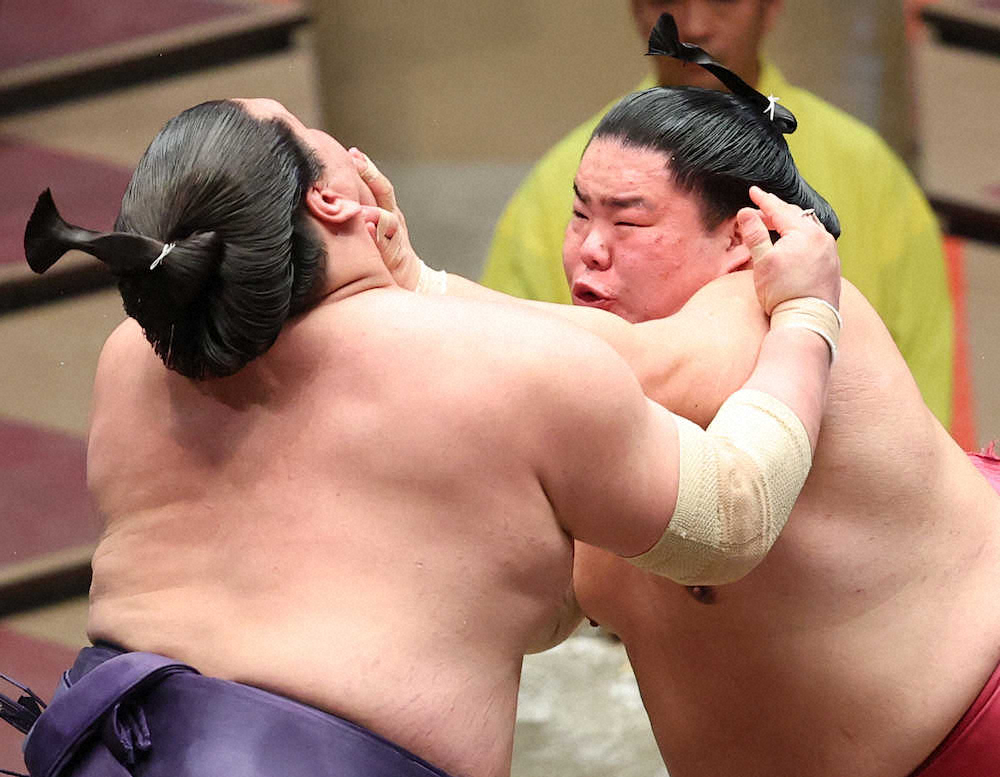 一方の大栄翔は完全に乗ってきた印象だ。右差し狙いの照ノ富士を下から突き上げ、スピードと馬力で圧倒した。優勝経験のある元大関を終始受け身の形にさせて、休まず攻め切った。今場所の相撲は迷いがないというか、怖いもの知らずのように見える。7日目の隆の勝戦に勝てば三役全撃破となる。隆の勝は下から突き上げられて前に出られると、残り腰がないタイプ。今の勢いなら大栄翔に分がある。(元大関・栃東)
