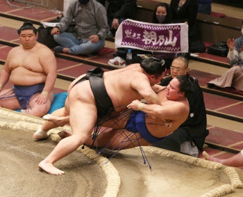 カド番大関の正代は阿武咲を一方的な相撲で押し出して6勝目。同じくカド番大関の朝乃山は琴勝峰を寄り倒して白星先行とした。