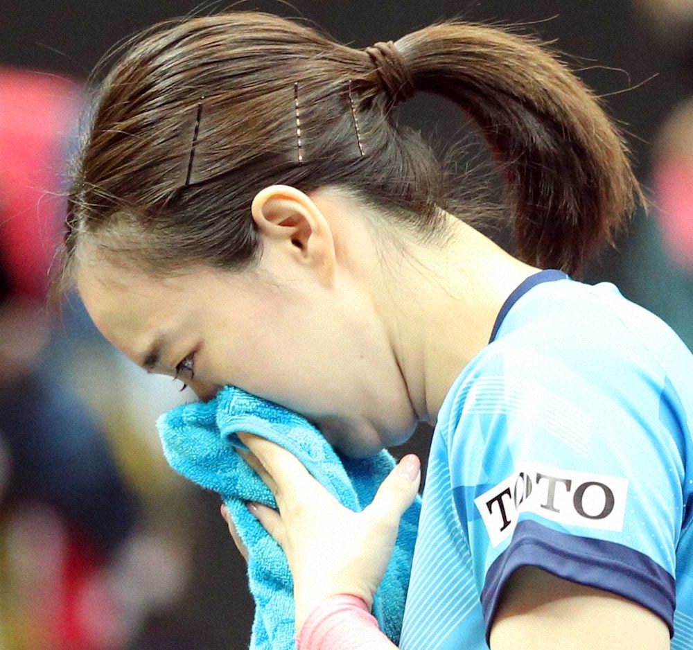 <全日本卓球選手権 女子シングルス決勝>優勝を逃して涙の伊藤美誠(撮影・北條 貴史)