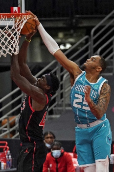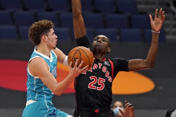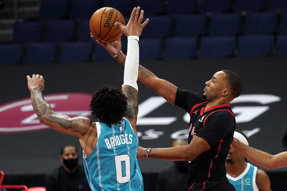NBAラプターズは16日、準本拠地となっているタンパ(フロリダ州)でホーネッツと対戦。同一カードとなった14日に3点差で勝っていたが、この日も116―113(前半66―64)で競り勝って4勝8敗。今季初めて白星を2つ並べた。