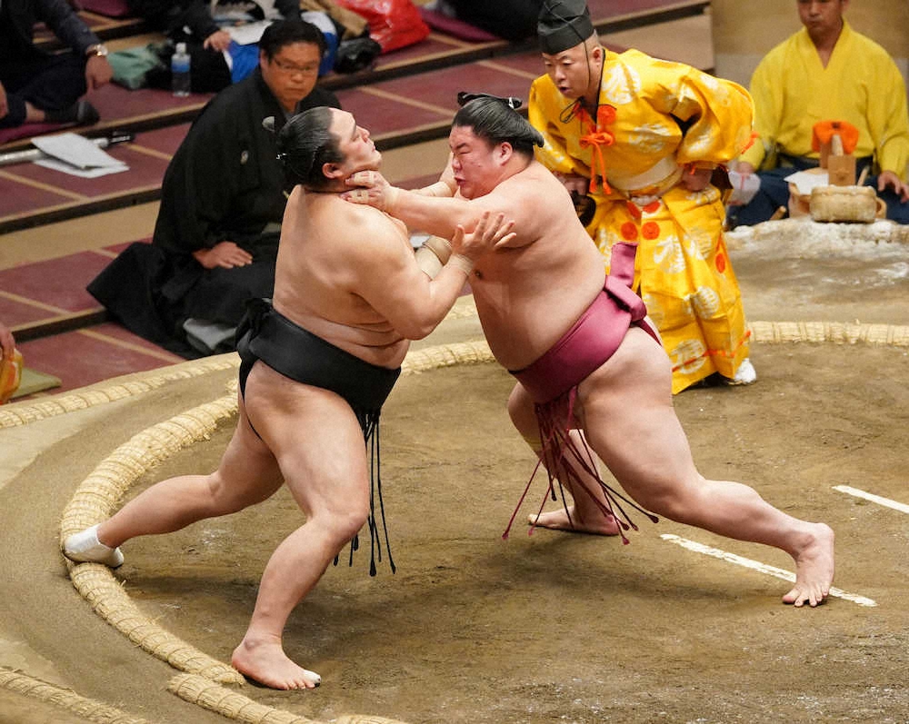 【玉ノ井親方 視点】喉輪でぐいぐい押した大栄翔 千代大海タイプの馬力発揮