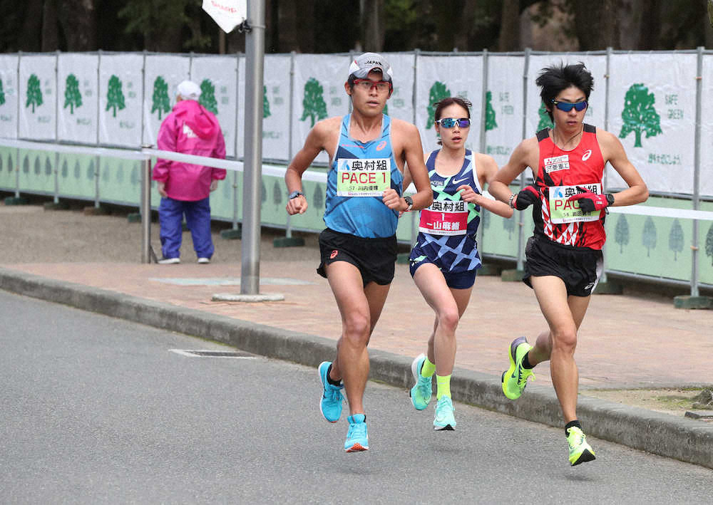 男子の川内優輝(あいおいニッセイ同和損保)がペースメーカーを務め、東京五輪代表の一山麻緒(ワコール)、前田穂南(天満屋)を先導した。