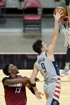 八村は前日のトレイルブレイザーズ戦でフィールドゴール(FG)を12本中10本(うち3点シュートは4本中3本)決めて今季自己最多の24得点をマークしていたが、この日のFG成功は11本中3本(うち3点シュートは2本とも失敗)。第1Qの最初の2本を決めたあとは第4Q序盤まで連続8本を失敗し、フリースローも9本中4本を外したばかりでなく、トラベリングも2度コールされるなどプレーの“精度”を欠く一戦となった。しかし大詰めの第4Qでは貴重なスティールを記録。ミスは多かったものの、闘志あふれるプレーで1月9日に4点差で負けていたヒートに雪辱した。