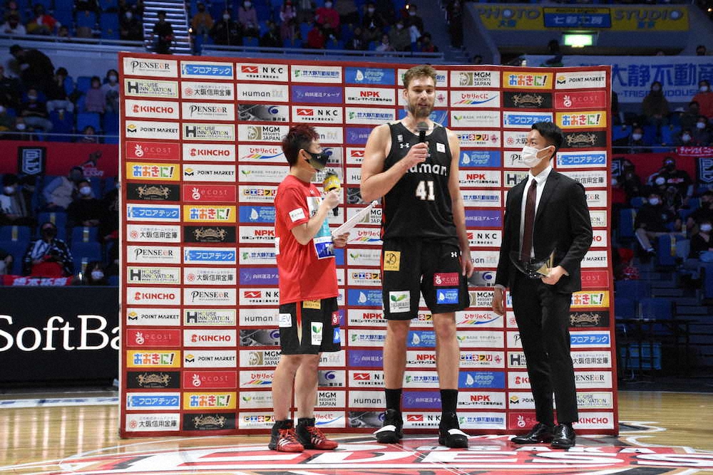 相手を寄せ付ける気配さえ感じさせず、大阪が2試合ぶりの白星を挙げた。東地区の強豪・SR渋谷に先制こそ許したが、すぐさま追いつくと、その後はリードを一度も譲ることなく快勝。試合終盤には角野亮伍(24)や駒水大雅ジャック(22)ら出場機会の少ない若手選手をコートに送り出す余裕も見せた竹野明倫ヘッドコーチ代行(35)は「凄くボールを回して、ワイドオープンのシュートを思いっきり打てたことが良かった」と手応えを口にした。