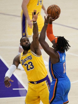 レイカーズの延長戦は6日のピストンズ戦(再延長)、8日のサンダー戦に続いて3試合連続。この日は第2Qの序盤で20点のリードを許し(23―43)、第4Qの7分すぎにようやく初めてリードするという苦しい展開となったが、3点を追っていた第4Q残り19・6秒、25得点を挙げたレブロン・ジェームズ(36)が同点の3点シュートを成功させてサンダーを延長戦にひきずりこんだ。1点をリードしていた延長残り4・3秒にはサンダーのアル・ホーフォード(34)に目がけて投げられたスローインをジェームズが“インターセプト”して時間を削り勝利に貢献。アンソニー・デービス(27)とアレックス・カルーソ(26)を故障で欠く苦しいローテーションとなったが、36歳のベテランが獅子奮迅の活躍を見せて3試合の延長戦すべてに白星を挙げた。