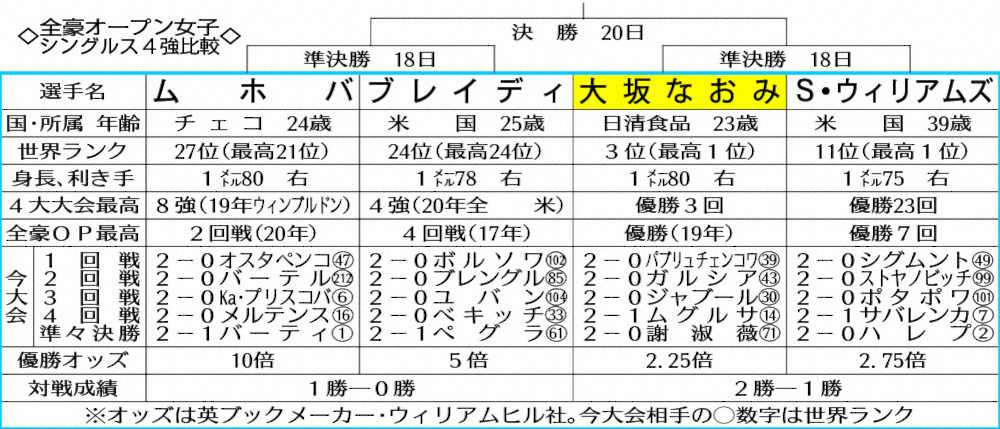 準決勝で対戦するセリーナ・ウィリアムズ(左)と大坂なおみ(AP) Photo by AP 大坂VSセリーナ、異次元“パワーサーブ”対決!4大大会では18年全米決勝以来… ギャラリーで見る この記事のフォト 2021年02月18日の画像一覧 もっと見る 2021年02月18日の画像をもっと見る