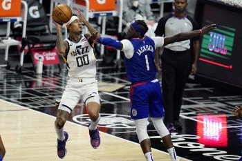 NBAは17日に各地で10試合を行い、西地区全体首位のジャズは敵地ロサンゼルス(カリフォルニア州)で同3位のクリッパーズを114―96(前半46―52)で下し、9連勝で24勝5敗。センターのルディー・ゴベア(28)が23得点、20リバウンド、ガードのドノバン・ミッチェル(24)が24得点と7リバウンド、7アシスト、4スティール、ベンチから出たジョーダン・クラークソン(28)が18得点を稼いでここ21戦で20勝目を挙げた。ジャズは2021年になって22勝3敗。猛烈な勢いで白星を量産し、西地区全体2位のレイカーズとのゲーム差は「2」となった。