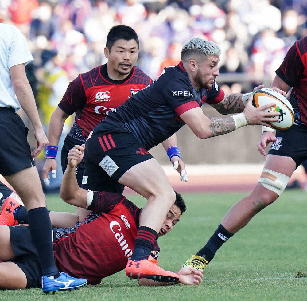 この日は「気が向いたので、思いつきでやった」という銀髪でプレー。試合中にはキヤノンの日本代表SH田中史朗と会話をする場面もあった。スーパーラグビーなどで元々面識があったと言い、「今は日本語を勉強しているので、家族はどうや? 出身はどこか?と聞いた」と明かして笑わせた。