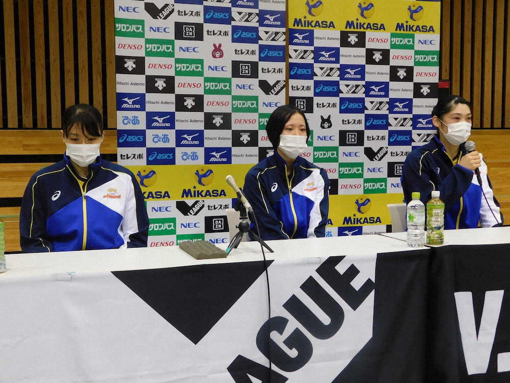 レギュラーシーズン21戦負けなしで1位の東レは1ー3で同2位のJTに敗れ、9季ぶりの優勝を逃した。昨年12月の皇后杯決勝で敗れた相手にリベンジならず。試合後、日本代表の黒後愛(22)、関菜々巳(21)、石川真佑(20)は悔しさをにじませた。