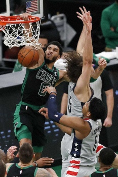 セルティクスは17勝17敗で再び勝率は5割に復帰。テータムとともに球宴のリザーブメンバーに選出されたジェイレン・ブラウン(24)が左膝を痛めて欠場したが、テータムが31得点を記録してチームを引っ張った。テータムは残り1分33秒からは1人で8得点を個人技だけでマーク。ウィザーズのスローインの際にはビールをマークしてミスを誘発させた。