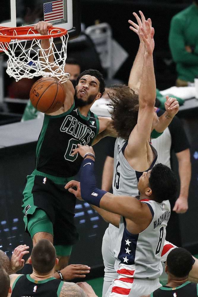 第2Q、八村との1対1を制してダンクを決めるセルティクスのテータム(AP)