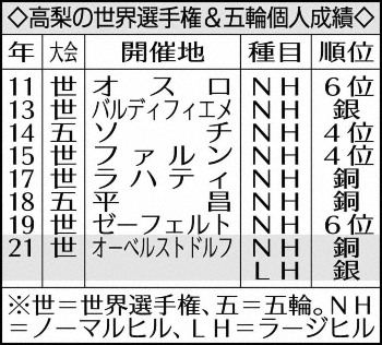 表彰式で自身の名が呼ばれると、高梨は両手を上げてマスクの下に屈託のない笑みを浮かべた。銅メダルだった大会2日目の個人ノーマルヒルは「複雑」としたが、この日は言葉の端々に充実感がにじんだ。「最後まで自分の力を出し切ることができて、自分の可能性を感じることができた。最後のジャンプを良い形で締めくくれて自信になりました」