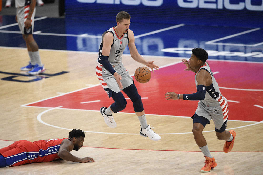76ersは4連勝で26勝12敗。新型コロナウイルス感染防止規定(プロトコル)の対象となった球宴選出(欠場)の2人のうち、ガードのベン・シモンズ(24)は2試合連続で欠場となったが、今季の得点部門でビールに次いで2位(30・2)につけているセンターのジョエル・エンビード(26)は復帰。23得点と7リバウンドをマークしたものの、第3Qの5分すぎにダンクから着地した際に左膝を負傷し、自分で立ち上がったもののプレー続行は不能となった。先発ガードで今季のスティール部門で10位(1・50)につけているディフェンスのスペシャリスト、マティス・サイブル(24)は第1Q(32―15)だけでドラフト同期の八村らを含めてウィザーズの3選手から3つのスティールを記録。立ち上がりで流れを作る貴重な役目をこなした。