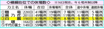 ▼11月6日 7月場所で痛めた右膝の回復が遅れ、11月場所の休場を決めた。