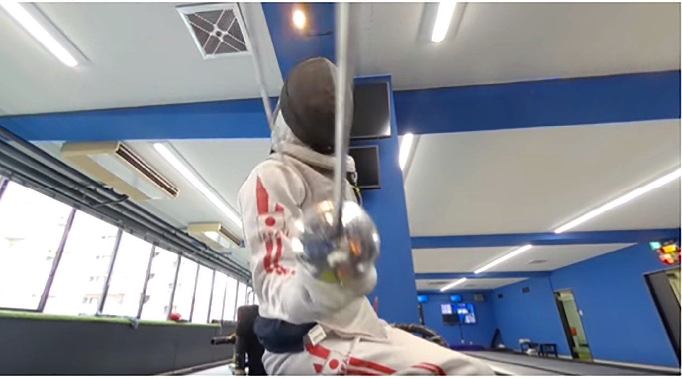 選手の頭につけたカメラと、選手の剣と剣をかわす、そのど真ん中に360度カメラが置かれている。そのカメラの真横を剣がすり抜けていく様子は、まさにスリル満点。フェンシングならではの剣の音も体感できる。