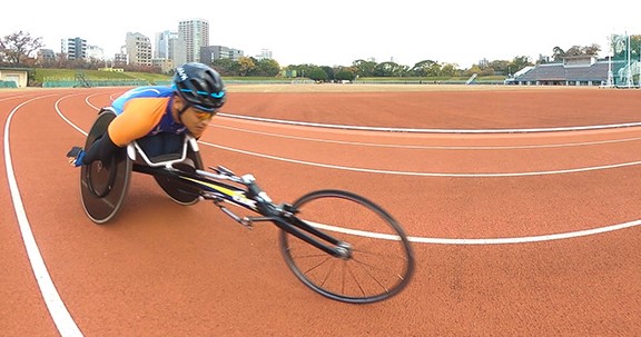 車いすにカメラが設置されているため、選手がどのような姿勢で漕いでいるのかがリアルに感じられる。またコース上にカメラが置かれており、その上を猛スピードで通り抜けていくスピード感と音の迫力も見どころ。