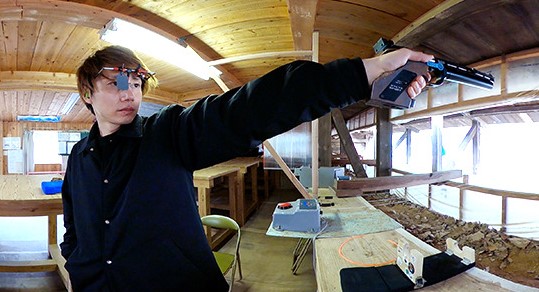 独特の間や緊張感に惹きつけられる静のスポーツ。インタビューでは、1時間15分の間に60発打つことはまるで綱渡りのような感覚だと表現。射撃前後の弾の変化やグリップの調整など、競技ならではの魅力を体感ができる。