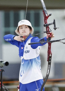アーチェリー五輪選考会女子 的を狙う山内 Photo by 共同 近大・山内&大橋、最終日残った アーチェリー五輪代表最終選考 ギャラリーで見る この記事のフォト 2021年03月21日の画像一覧 もっと見る 2021年03月21日の画像をもっと見る