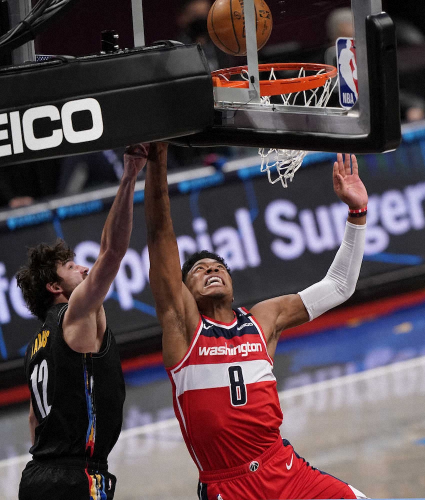 NBAウィザーズは21日、敵地ブルックリン(ニューヨーク州)で今季2戦2勝だった東地区全体2位のネッツと対戦。第1Q途中で14点のリードを奪ったものの第2Qで26―38と後手に回って流れをつかむことはできず、第4Q終盤で一時1点差まで詰め寄ったが106―113(前半56―63)で敗れた。今季の成績は15勝26敗で、球宴明けの7戦では6敗目。桜の花びらを織り込んだ新しいシューズで登場した八村塁(23)は、フィールドゴール(FG)を11本中9本成功させ(3点シュートは2本とも成功)、20得点と19リバウンドをマークして今季3回目のダブルダブル(通算6回目)を達成したが、勝利をつかむまでには至らなかった。