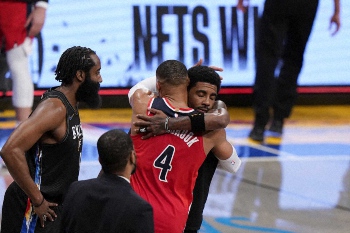 ネッツは29勝14敗。ウィザーズには今季1点差と3点差で敗れていたが3戦目では白星。カイリー・アービング(28)が28得点、ジェームズ・ハーデン(31)が26得点をマークしてここ17戦で15勝目を挙げた。
