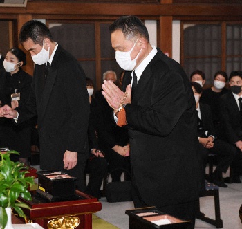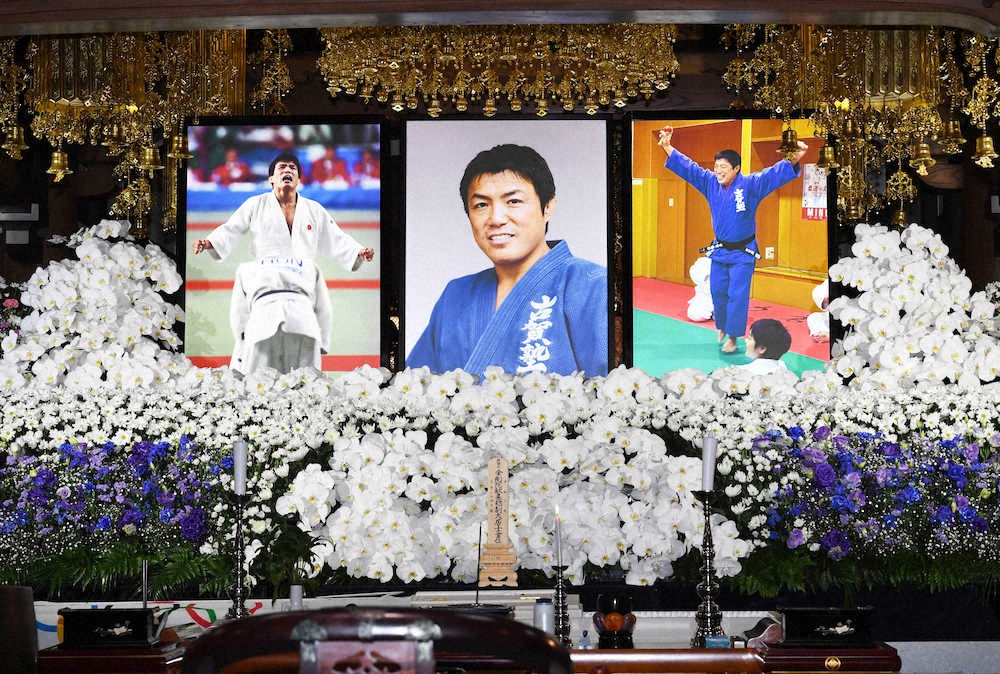 ▽主な参列者 山下泰裕、吉田秀彦、北田典子、金野潤、園田隆二、海老沼匡、中矢力、梅木真美、泉浩、中村兼三、吉田優也、小川直也、山田利彦、北島康介、岩崎恭子(順不同、敬称略)