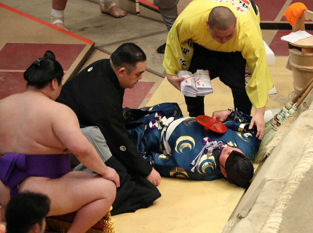 行司が消えた!?逆さ転落、立ち上がれず騒然 結びでハプニング