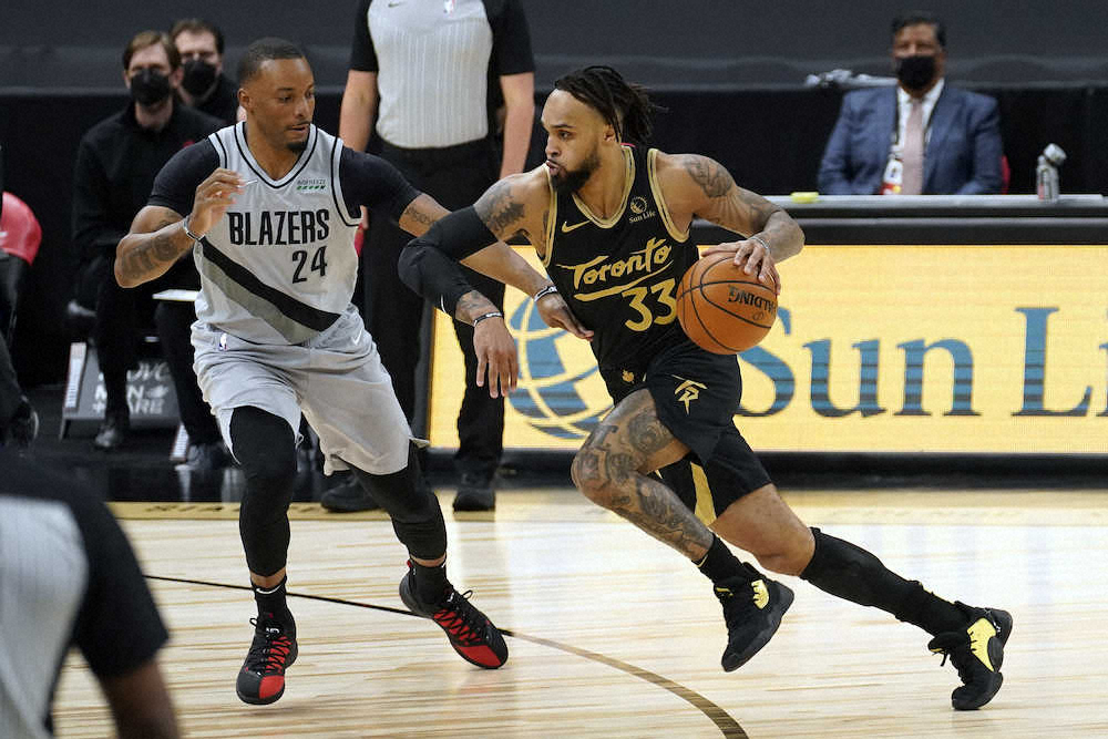 NBAラプターズは28日、準本拠地としているフロリダ州タンパでトレイルブレイザーズと対戦したが、この試合では3日前のトレード期限まで両チームに在籍していた3選手が、お互いに交換要員となったためにユニホームを替えて出場。ラプターズからトレイルブレイザーズに移籍したスモールフォワードのノーマン・パウエル(27)は新天地2戦目となった試合で、古巣相手に13得点を記録し、トレイルブレイザーズから移籍してきたゲイリー・トレントJR(22)は先発で6得点、ロドニー・フッド(28)はベンチから出て13得点をマークした。