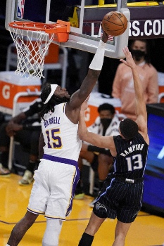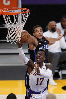 28日には各地で4試合が行われ、西地区全体4位のレイカーズは地元ロサンゼルス(カリフォルニア州)で、トレードと故障で開幕時の主力6選手を欠いている東地区全体14位のマジックと対戦。第4Qの4分41秒に5点差のビハインドとなってしまったが、ここから反撃して96―93(前半44―40)で競り勝った。
