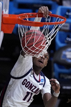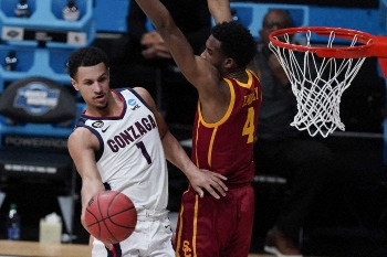 ゴンザガ大は今季通算30戦全勝で、不敗のまま「ファイナル4」に勝ち残ったのは1985年に大会が64チーム制になってからは史上3校目。また昨季から通算では34連勝で、2ケタ点差での勝利は27試合連続。南カリフォルニア大戦では、208センチのドリュー・ティミー(2年)が23得点、コーリー・キスパート(4年)とジェイレン・サッグス(1年)がそれぞれ18得点を挙げて勝利に貢献した。無敗のまま王者になると1976年のインディアナ大以来の快挙。なお南部地区では第1シードのベイラー大(26勝2敗)、中西部地区からは第2シードのヒューストン大(28勝3敗)が勝ち上がっている。