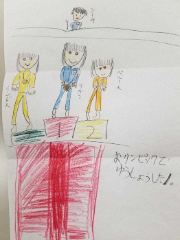 小学3年時に池江が描いた「おリンピックでゆうしょうした!(原文まま)」の絵が今では宝物。手渡された時と同じメガバンクの封筒に入れた状態で大切に保管している。五輪制覇が実現することを信じて疑わないが、周囲からの過度の期待が重圧になることを懸念。「今は第2の池江璃花子が動きはじめたところなので、健康が一番。最もいいコンディションで出られるのは24年のパリ五輪だと思う」とおもんぱかった。